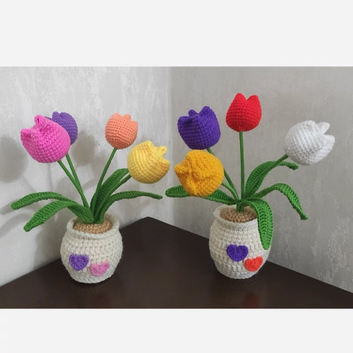گلدان گل لاله بافتنی