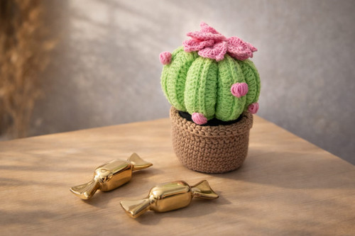 گلدان کاکتوس گلدار بافتنی