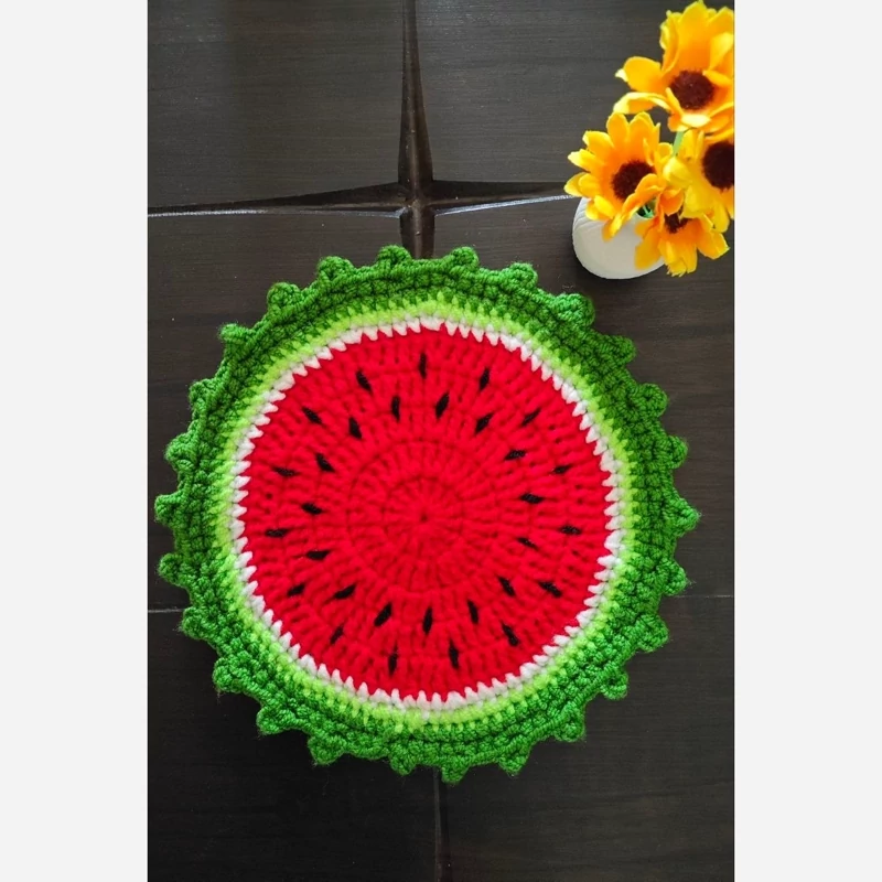 زیر بشقابی بافتنی طرح هندوانه