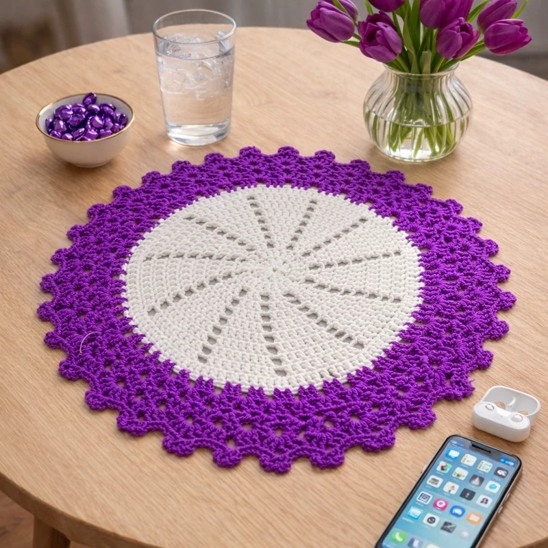 رومیزی دستبافت مدل بنفشه