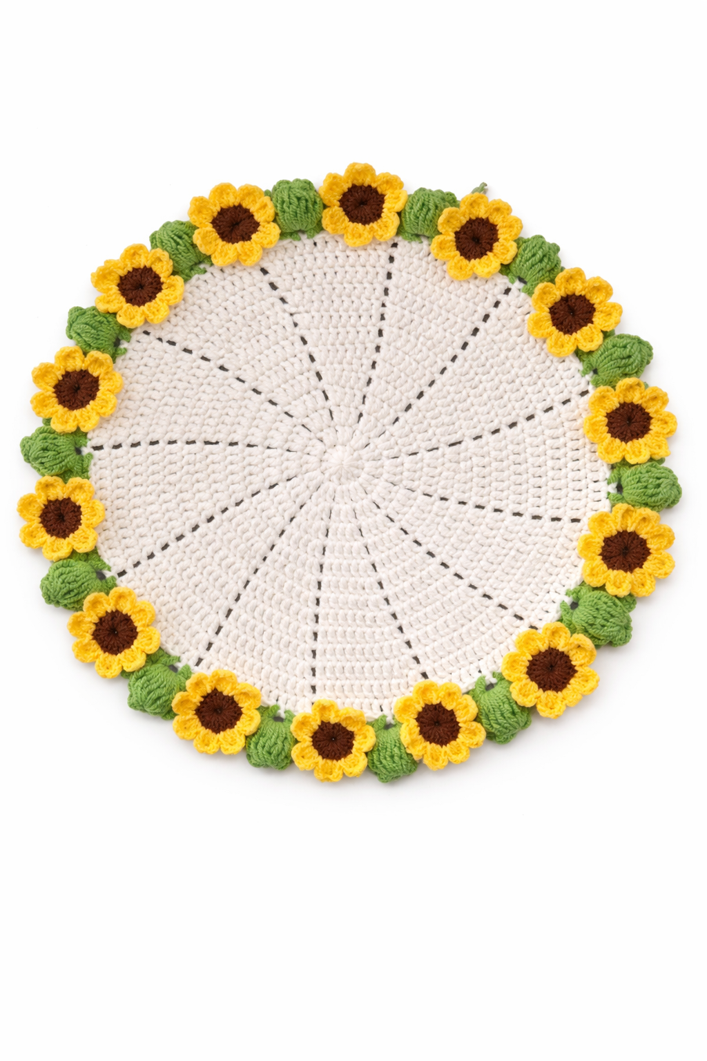 بافته شده با کاموا اکریل تاب قابل شستشو قطر با گل ها 30 سانت قابل سفارش در رنگ و سایز موردنظر
